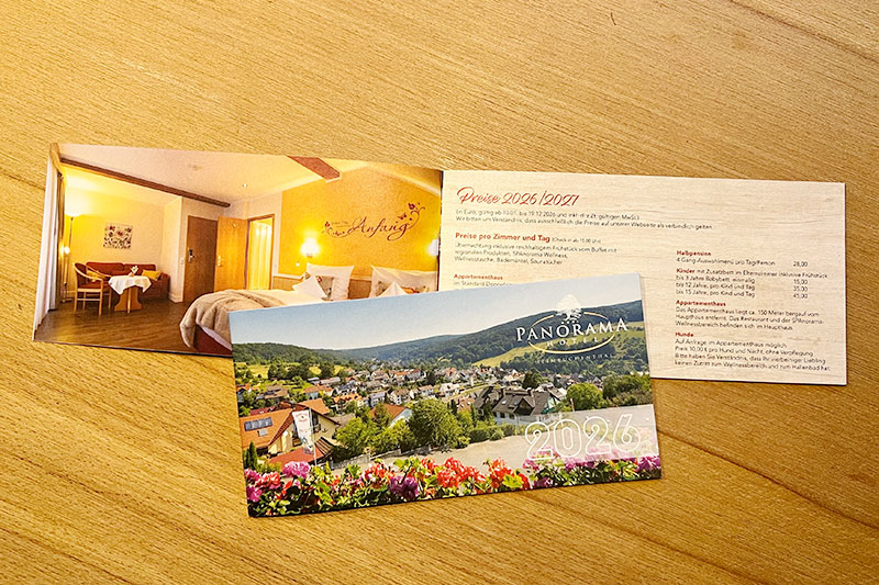 Für unseren Stammkunden aus Heimbuchenthal haben wir das neue, 20-seitige Hausprospekt für das Jahr 2026 gestaltet und geliefert. Darin finden die Hotelkunden alle Preise und Angebote. Außerdem kann man sich einen Überblick über das Ambiente verschaffen. Das Magazin kann man sich auf der Hotel-Website downloaden.